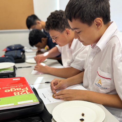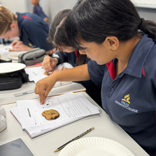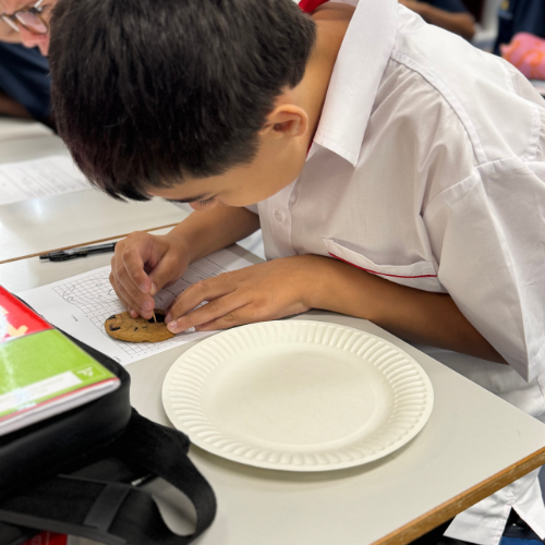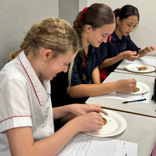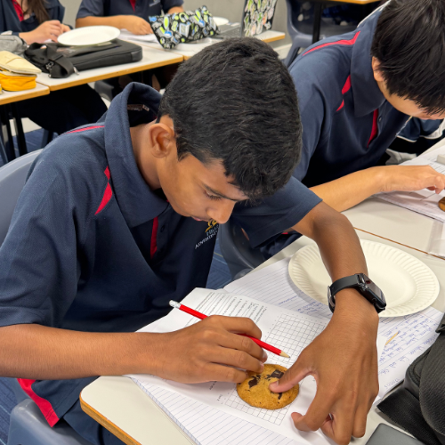 Year 8 students have been investigating the ancient past in History this term. As part of their study, they have been exploring how archaeologists work and to demonstrate this they used a toothpick to excavate chocolate chips from a cookie attempting to keep their ‘artefacts’ intact. Most students enjoyed devouring their excavation sites after the lesson.
