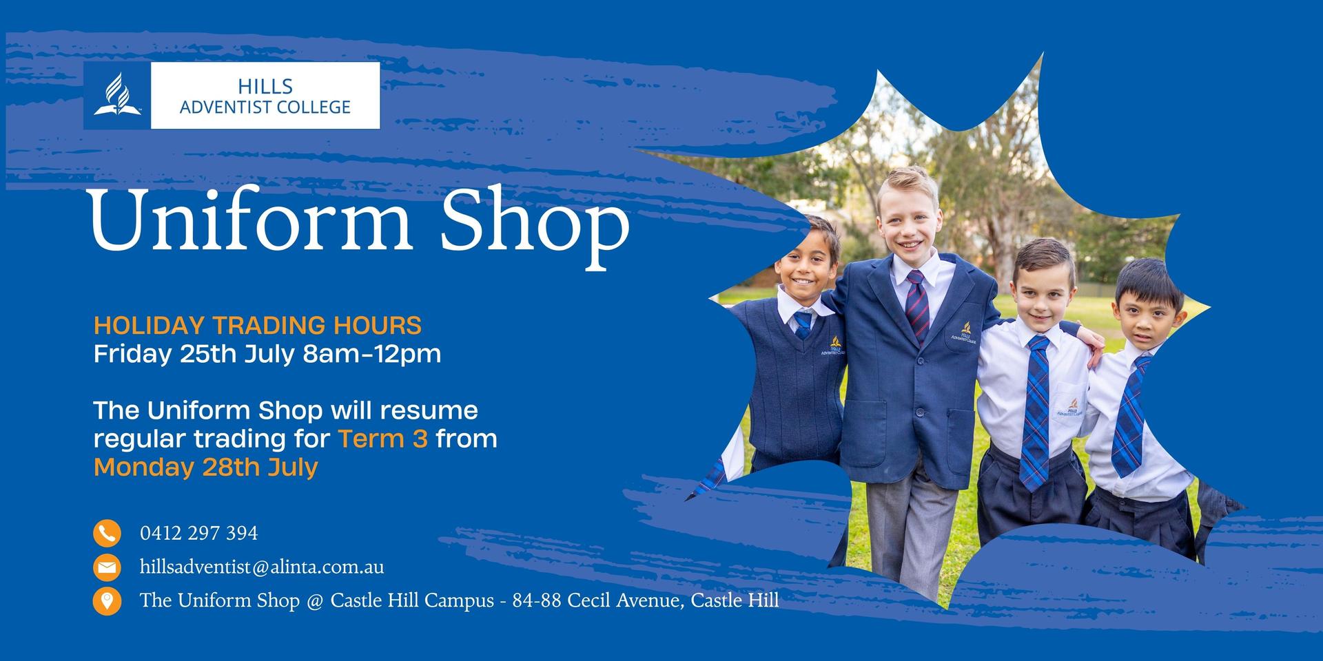 - Uniform Shop Holiday Hours
