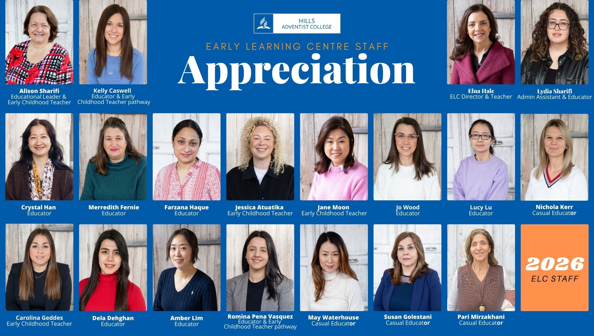 As we share this photo collage celebrating the ELC staff of 2026, we want you to know how deeply grateful we are for all that you do. Your commitment does not go unnoticed, and your impact will be felt for years to come.